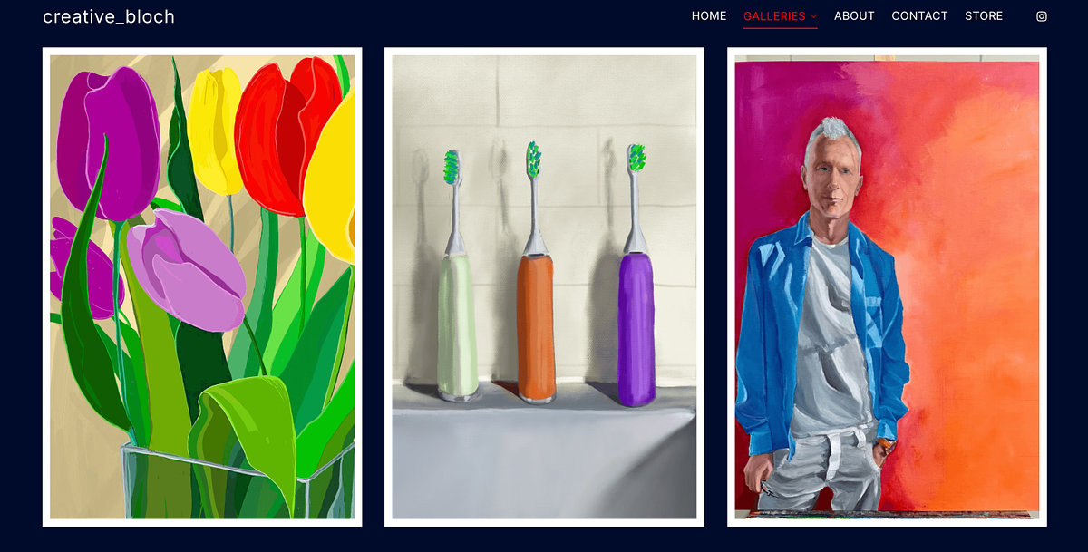 Here's an artist portfolio website example of creative_bloch's built using Pixpa.
